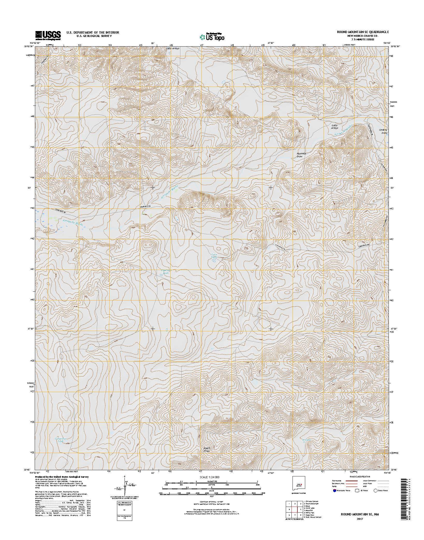 USGS Topo 7.5-minute map for Round Mountain SE